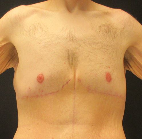 c) Operasjoner for gynekomasti hos menn: Hos menn individualiseres behandling alt etter hvor mye kjertelvev, fett og hud som er igjen etter vektreduksjonen. Vi ønsker å lage minst mulig arr, men i mer ekstreme tilfeller er eneste alternativ en amputasjon av brystet med replassering av brystvorten som et fritt transplantat (Figur 3)