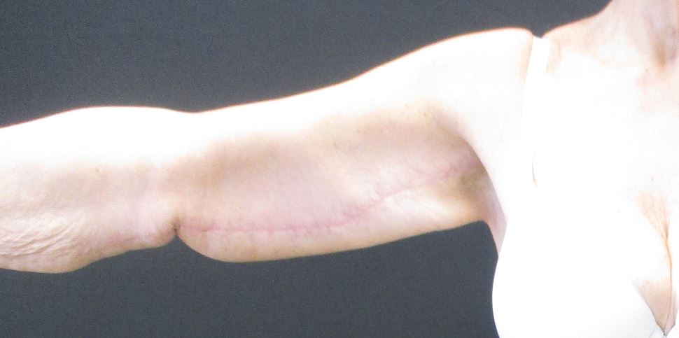 a) Armplastikk: Erfaringen har lært oss at vi bør tenke på armene som en separat funksjonell og estetisk enhet. Å kombinere armplastikk med en omfattende aksilleplastikk kan føre til uheldige strengdannelser som innskrenker bevegeligheten i skulderen. Vi fjerner derfor en ellipse fra behåret område i aksillen til albuenivå med fremre linje bak m. biceps og beregner nøye hvor mye som skal fjernes. Den ideelle pasienten har mye løs hud med lite restfett. Det er vanskeligere når pasienten har mye restfett. Alle behandlinger kombineres med fettsuging for å gjøre overgangene jevne.