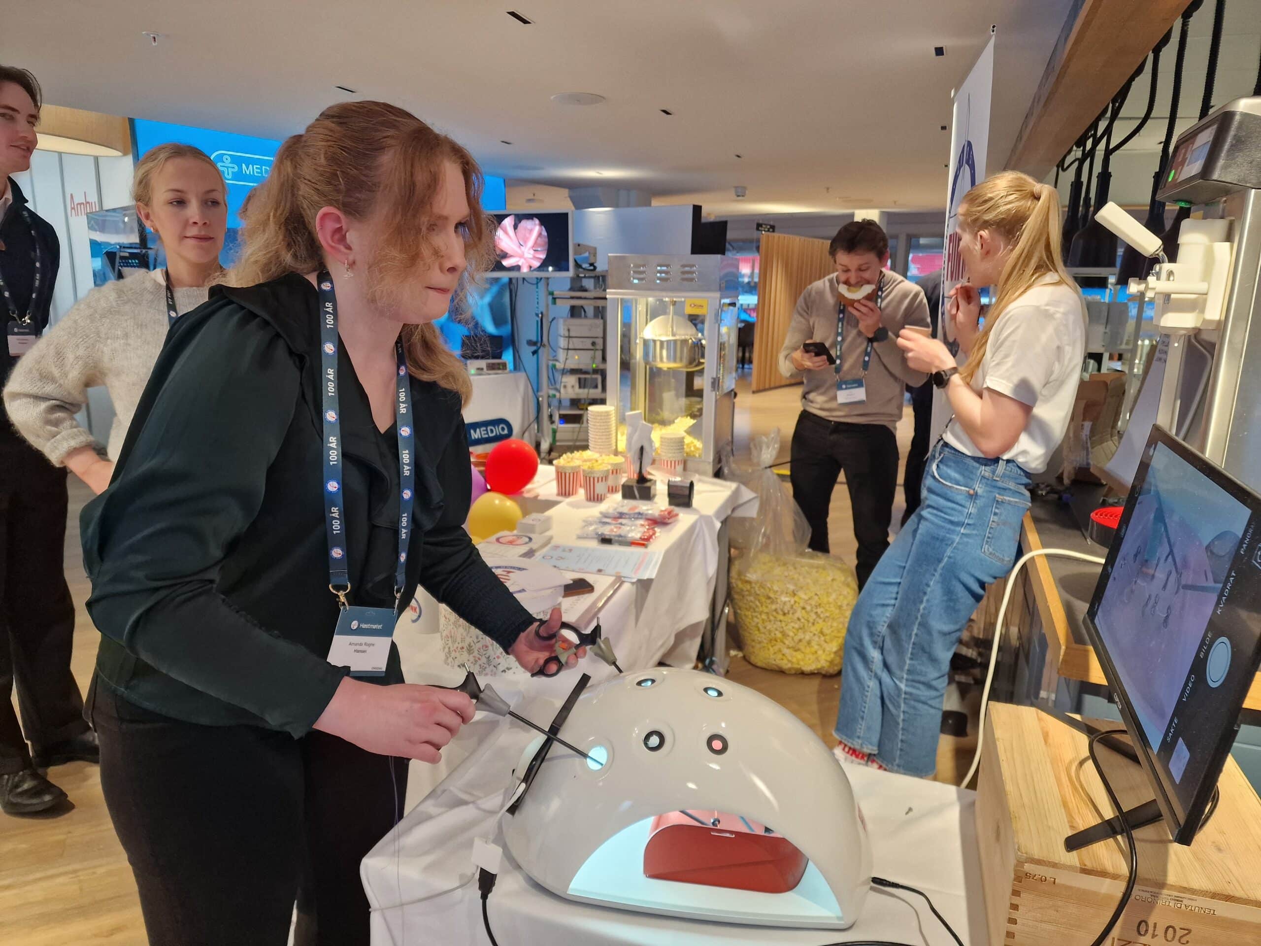 Årets laparoskopi-mester, Pelle Winsjansen, viste at NTNU-studenter både kan håndtere vinglete laparoskopi instrumenter og holde nervene i sjakk – imponerende!